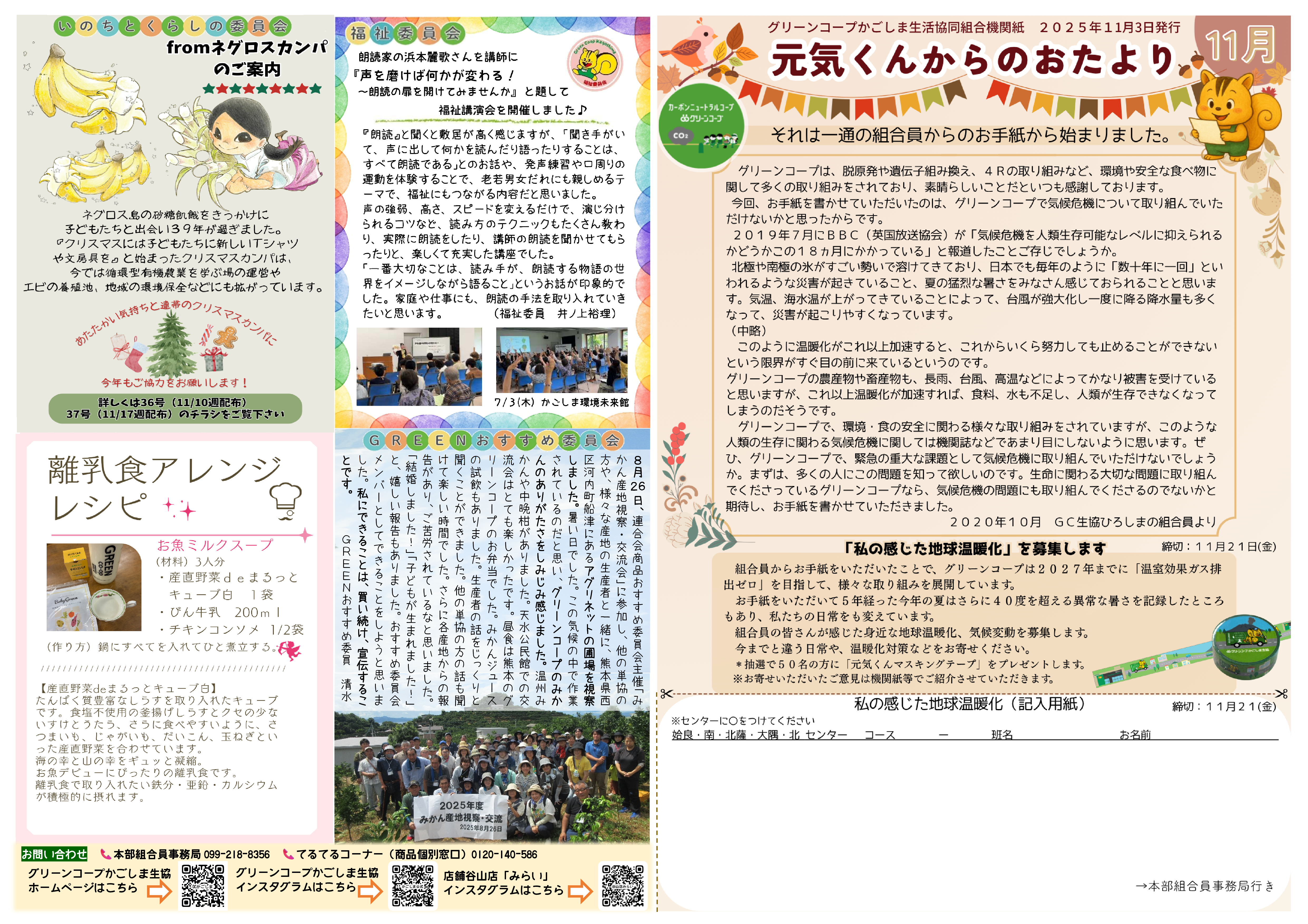 今回はかごしまの機関紙「元気くんからのおたより」11月号です。