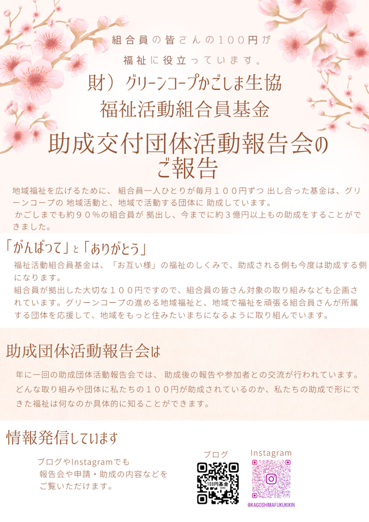 2026年1月27日(火)福祉活動組合員基金 助成団体活動報告会のお知らせ