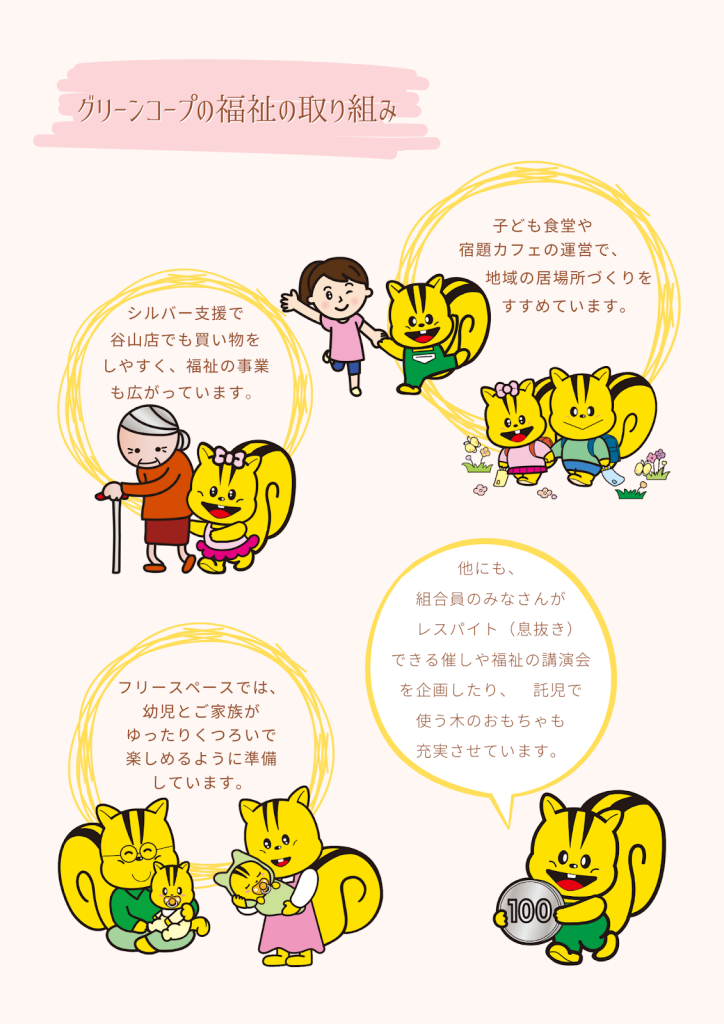 グリーンコープの福祉の取り組みや、地域で福祉活動を頑張っている組合員の、活動の様子を報告いただきます。